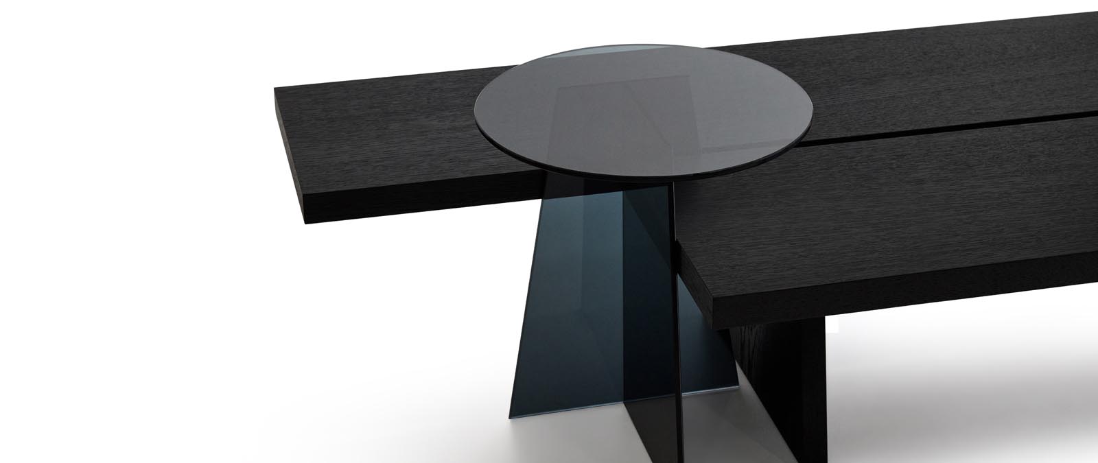 Orta sehpa tablası, kaplamalı 19 mm kalınlığında MDF’den üretilmekte olup, yüzeyde ceviz kaplama üzeri cila, meşe kaplama üzeri cila veya Amerikan cila (istenilen renkte) uygulanabilmektedir. Yan sehpalar ise 8 mm kalınlığındaki camın lazer kesimiyle üretilmektedir. Orta sehpanın ayakları 36 mm kalınlığındaki MDF’den yapılmaktadır.