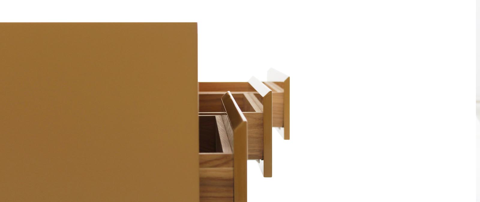 TV ünitesinin dış çerçevesi 36 mm kalınlığında karkas sistemiyle, iç gövdesi ise 18 mm kalınlığında MDF’den üretilir. Yüzey kaplamasında ceviz kaplama üzeri cila, meşe kaplama üzeri cila, Amerikan cila (istenilen renkte) veya tüm RAL renklerinde parlak ya da mat lake seçenekleri sunulmaktadır. Üründe üç adet 18 mm kalınlığında MDF çekmece bulunur; çekmecelerde kulp kullanılmadan, kapakta yer alan pah formu sayesinde açılım sağlanır. Çekmeceler çift açılım ve frenli ray sistemine sahiptir. Ayrıca çekmece iç kasaları, klapalardan farklı bir şekilde kaplamalı üretilebilmekte olup, aynı kaplama veya lake seçenekleri ile tamamlanabilir.